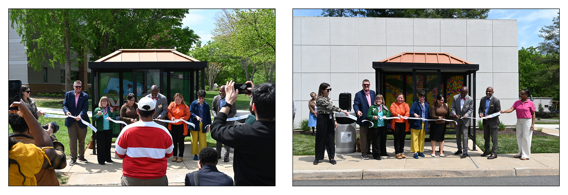 OmniRide and Northern Virginia Community College (NVCC) celebrated the unveiling of new bus shelter artwork on the NVCC Woodbridge Campus with a ribbon-cutting ceremony, marking a unique collaboration that blends public transit with student creativity. Through the partnership, OmniRide invited NVCC graphic arts students to create original artwork for two bus shelters on campus, transforming everyday transit spaces into vibrant works of public art. Student artists Betssy Lopez Vallejo and Jacob Sam were selected to have their designs installed.