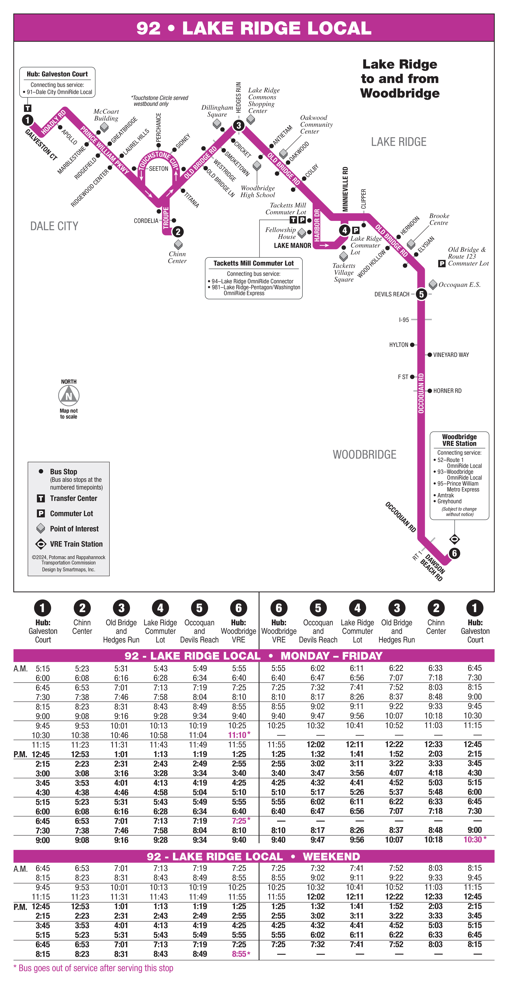 - Timed transfer to Route 93 – Woodbridge Local at Woodbridge VRE Station
