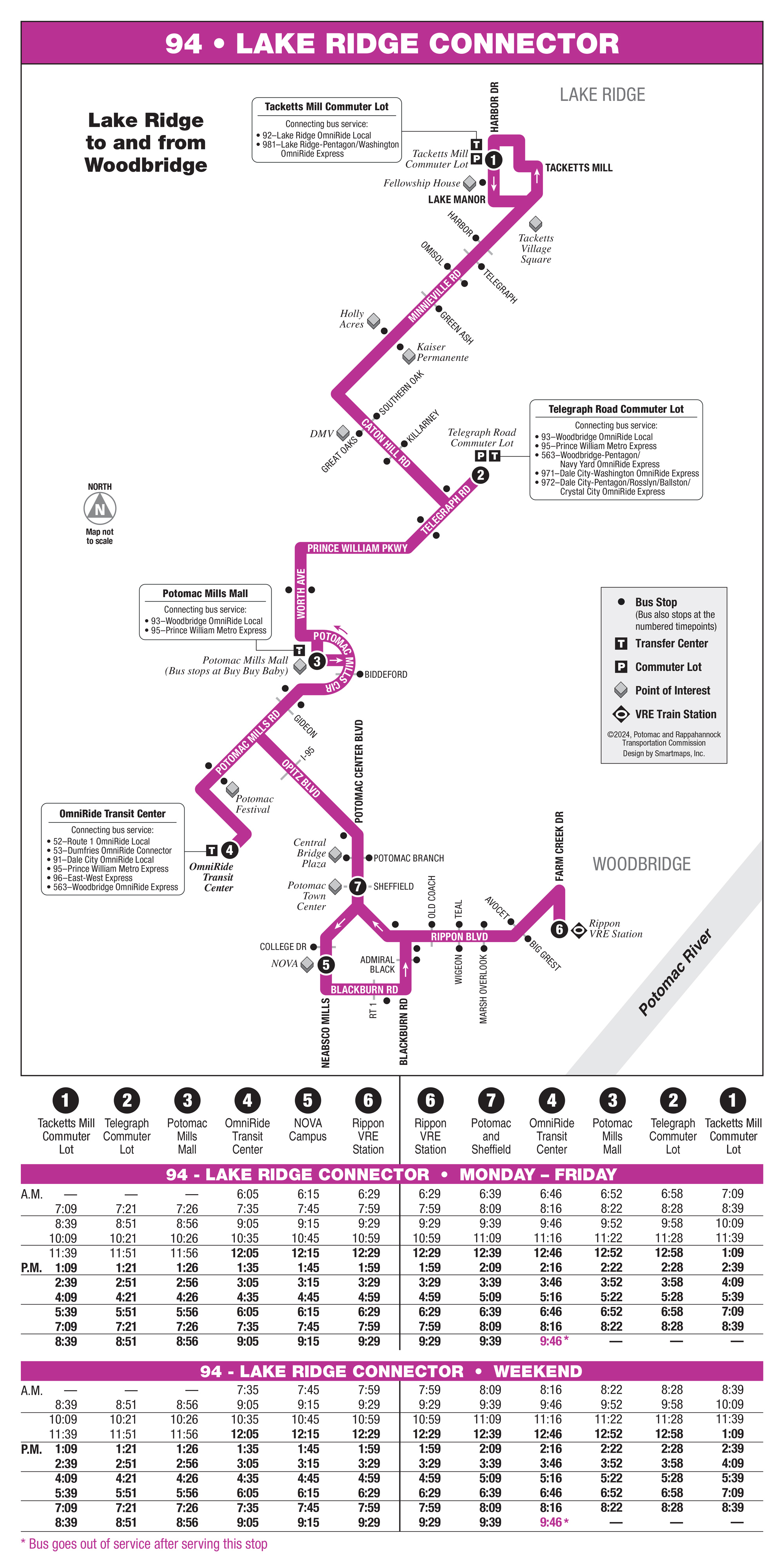 - Serves Potomac Festival, OmniRide Transit Center, and Potomac Mills Mall
